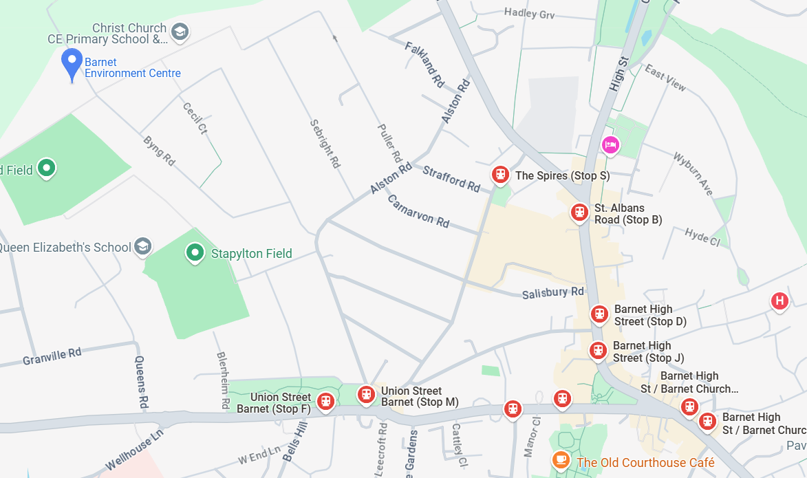 The Barnet Environment Centre is on the northern edge of High Barnet near the bottom of Byng Road.